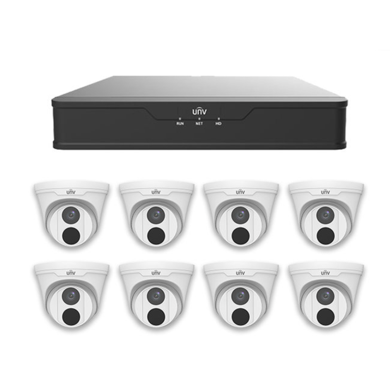 UniView 8 Channel PoE 4K NVR 2TB, 8 x 4MP Eyeball Turret Cameras