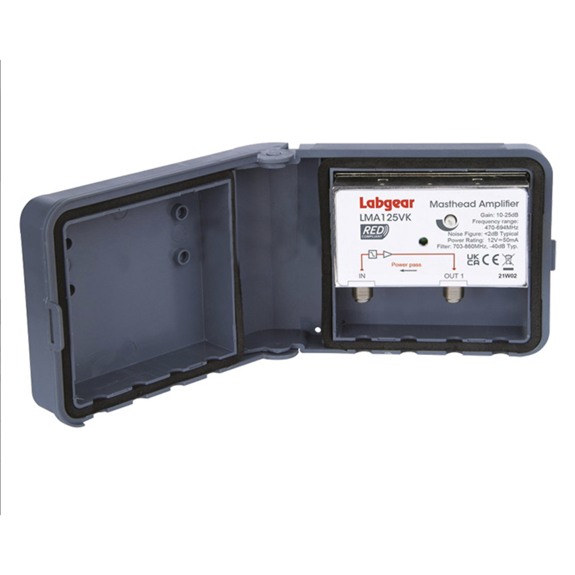 This unit is used in conjunction with a power unit and a UHF TV aerial to boost TV signal in poor reception areas